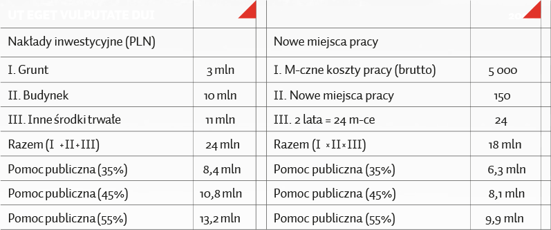 Przykład obliczania wysokości pomocy publicznej przysługującej inwestorowi obrazuje poniższa tabelka: